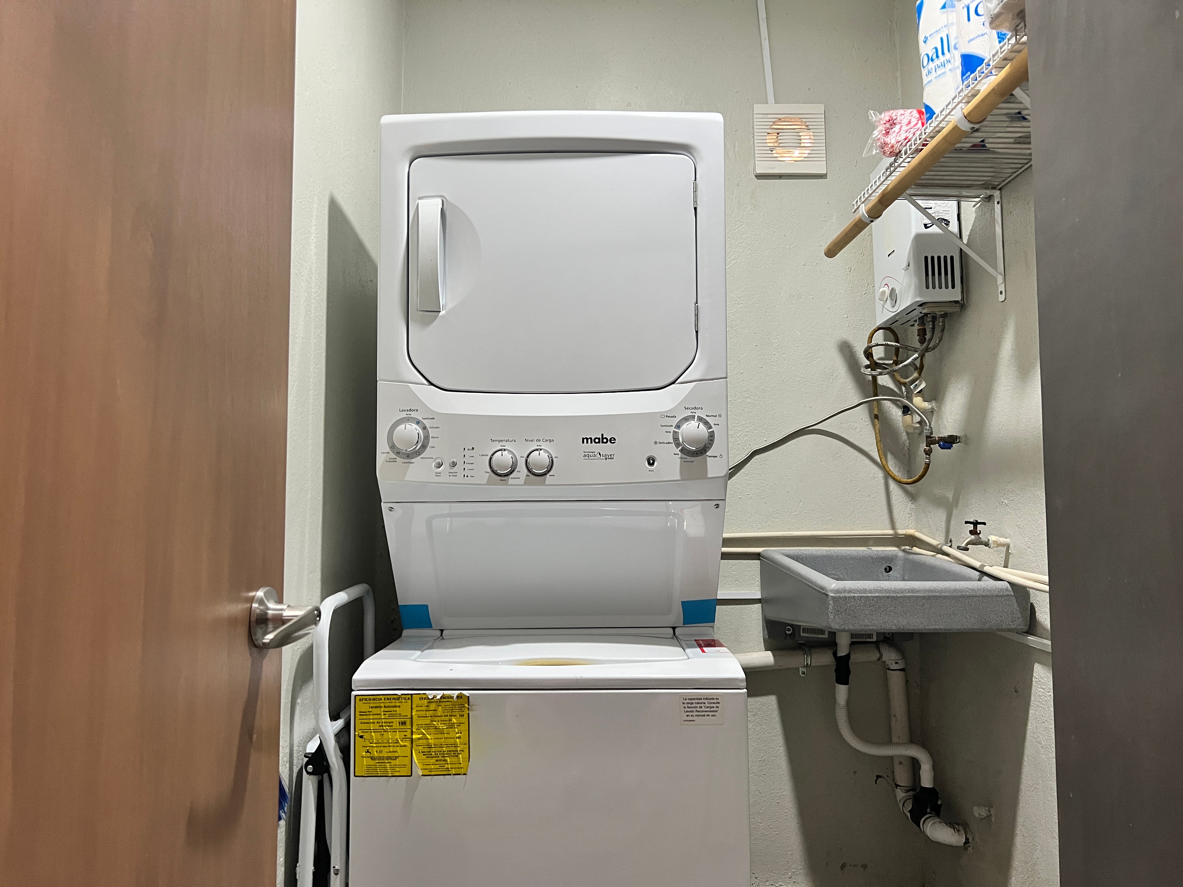 Lavadora y secadora para estancias de 5+ noches (o si te cae salsa en los shorts)