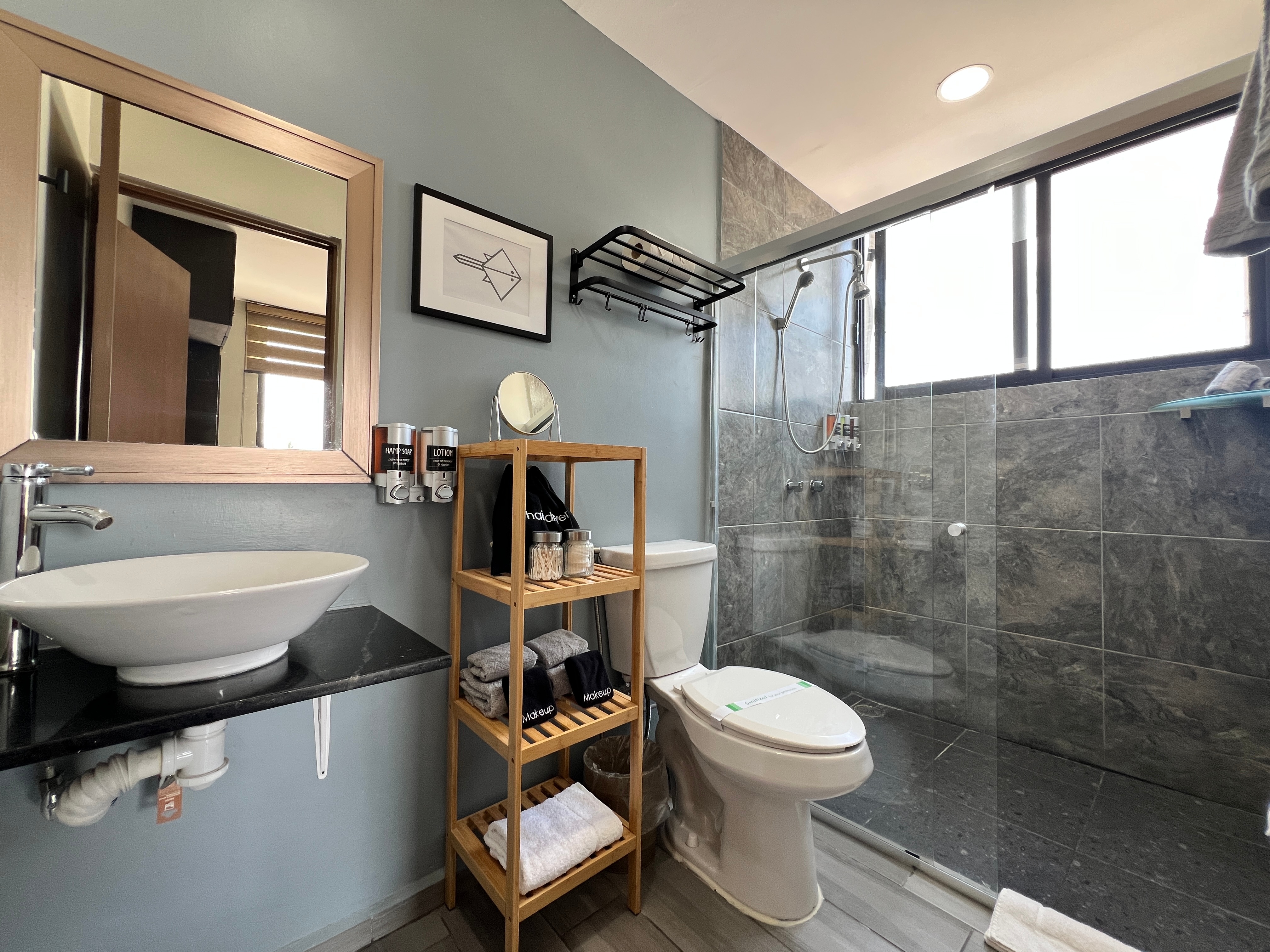 Recámara principal con cama king de memory foam y regadera tipo lluvia fancy
