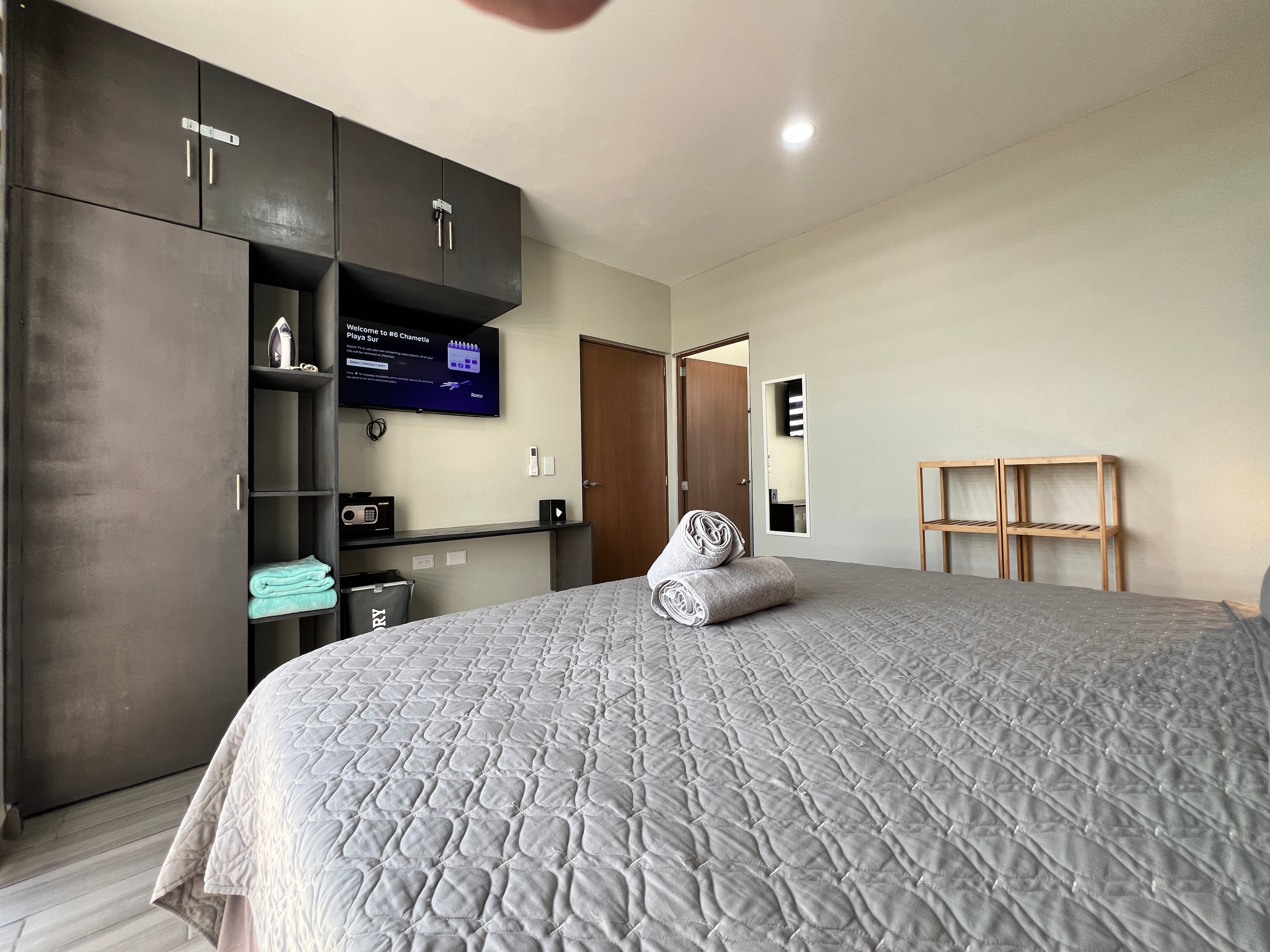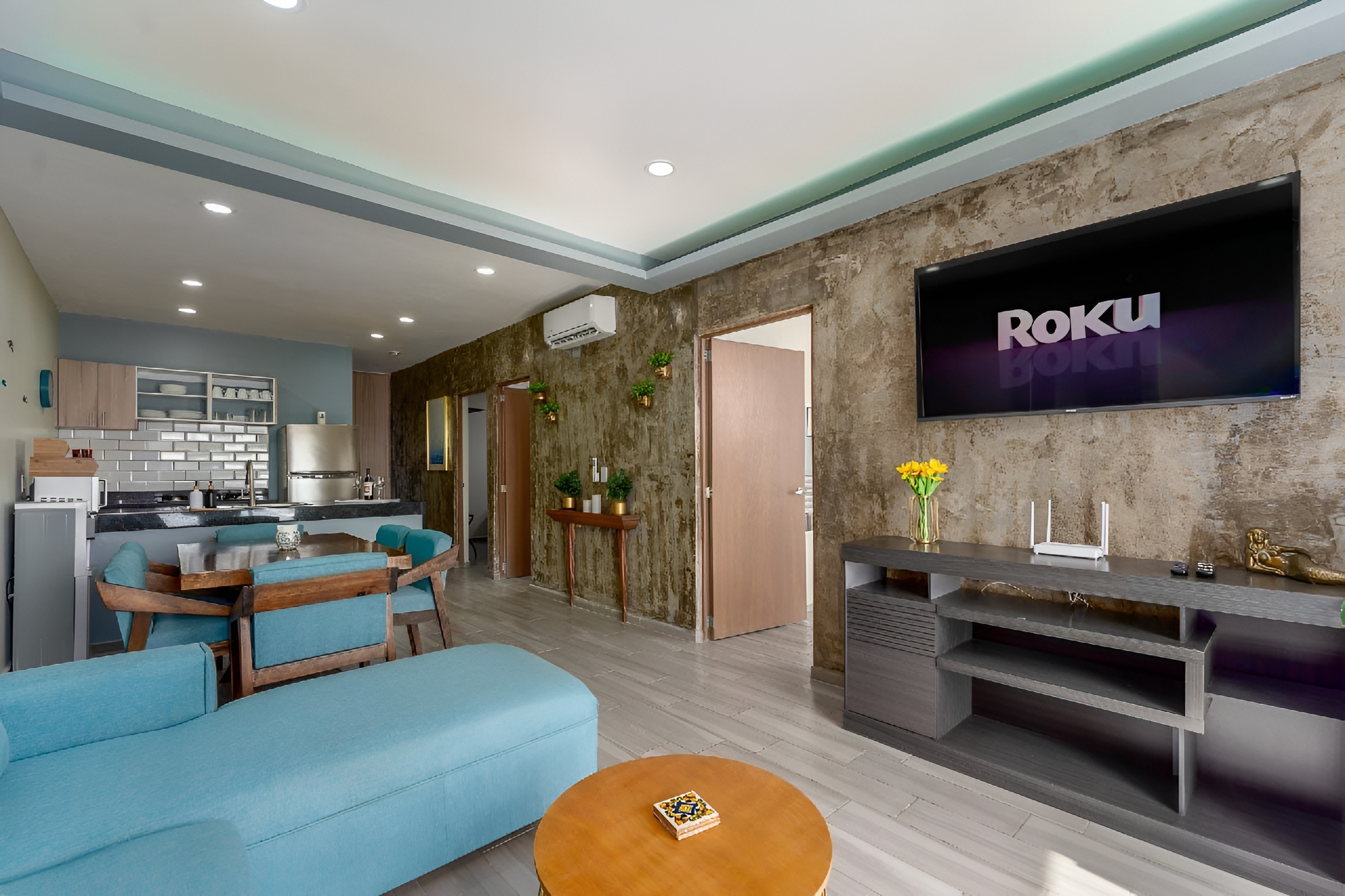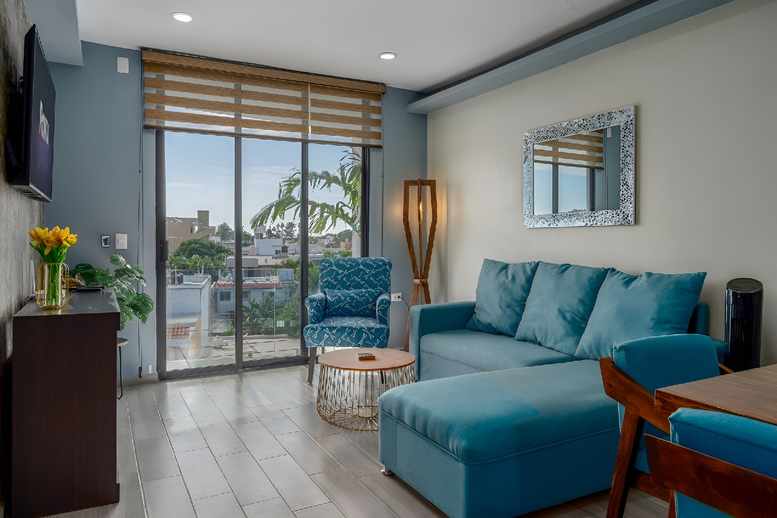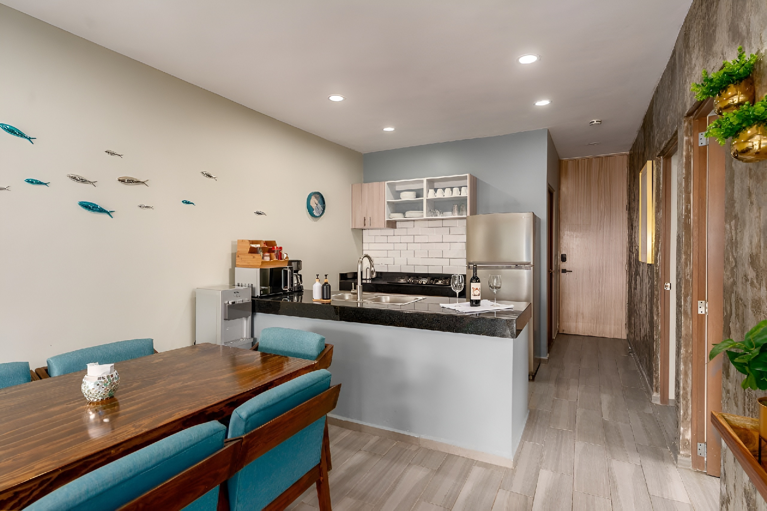 Esto no es el depa de tu abuelita (a menos que tu abuelita sea bien cool). Es un espacio con estilo, listo para relajarte: 2 recámaras, 2 baños, a solo pasos de la playa — con alberca en la azotea, asador, estacionamiento privado, y elevador (porque las calorías de vacaciones no cuentan, pero las escaleras sí).